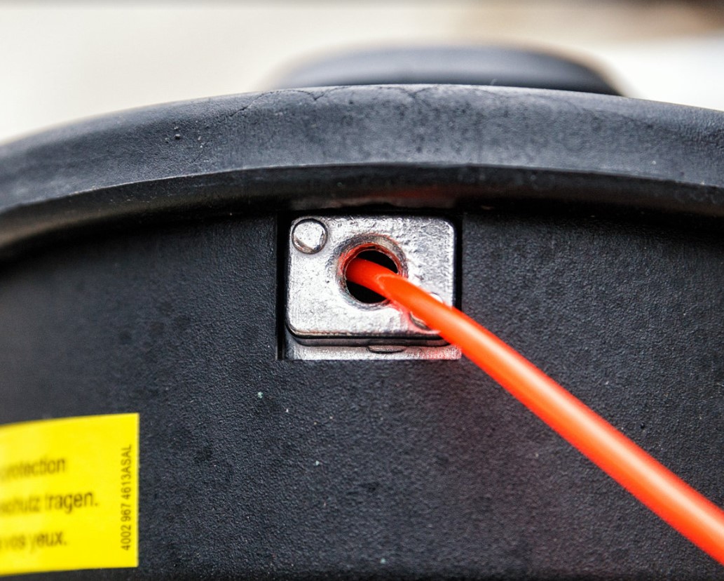 6.3 Катушка оснащена специальной системой полуавтоматической подачи лески Autocut 25-2 с металлическим сердечником. Некоторые производители стараются снизить себестоимость триммера и ставят пластиковые втулки, либо втулки из тонкого металла. С этими втулками известны две проблемы. Очень часто эти втулки начинают обрезать леску, в результате чего приходится разбирать катушку и заправлять леску заново. Вторая проблема, когда втулка расшатывается, и в результате вовсе вылетает ломая катушку.