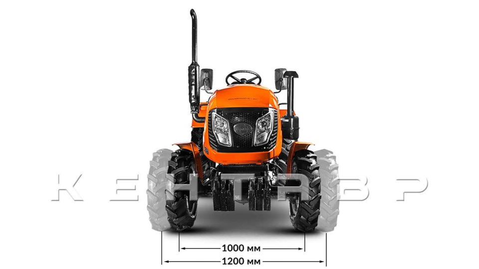 Данная модель имеет регулируемую колею от 1000 до 1200 мм. Передний мост мини-трактора Кентавр Т-244 регулируется благодаря предусмотренным в тракторе удлиненным валам и универсальным ступицам. Задняя колея изменяется за счет перестановки колес, имеющих специальные диски выпуклой формы. (Универсальные ступицы не идут в комплекте).