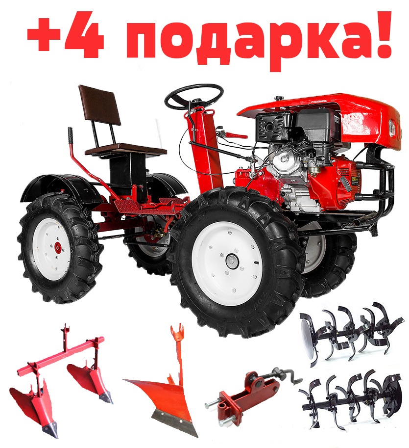 Мотоблок с адаптером под минитрактор с двигателем 18 л.с. (с пониженной передачей) + 4 подарка