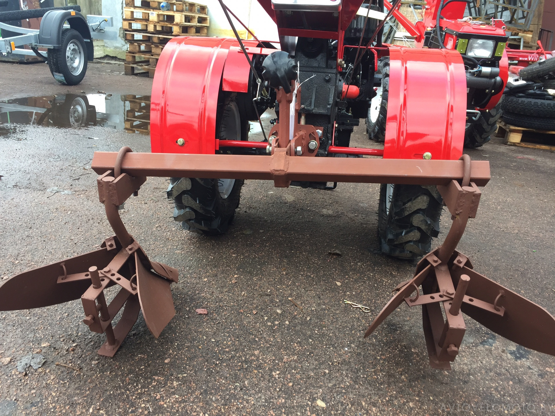 Для более комфортного использования агрегата в комплекте с мотоблоком идет дополнительное колесо и сидение. Так же в комплект сразу включены активная почвофреза и поворотный плуг. Галогенная фара позволяет использовать мотоблок в вечернее время.