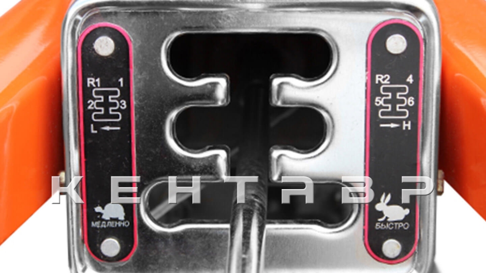 Мотоблок оснащен профессиональной КПП: 6 передач "вперед", 3 пониженых, 3 повышеных и 2 "назад", позволяют выбирать подходящую скорость движения, начиная от 2 км/ч, соответствующую медленному шагу человека, и до 25 км/ч. Корпус коробки передач выполенный из высококачественного чугуна с примесями магния что делает его стойким к ударам. Шестерни и валы трансмиссии изготовлены из легированной каленой стали, за счет чего их запас прочности повышен втрое.