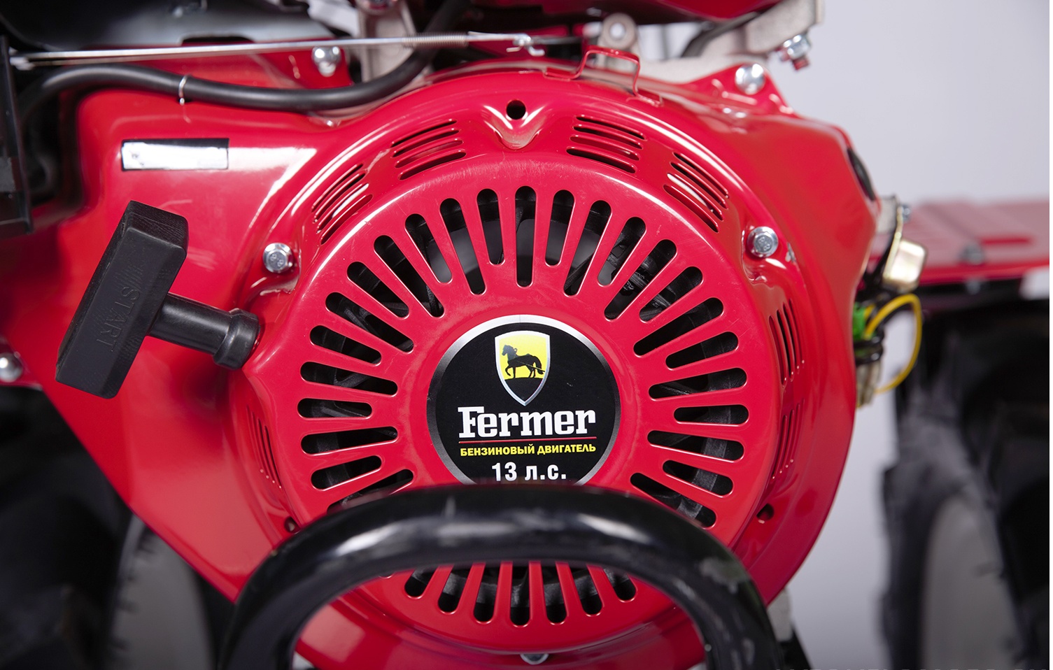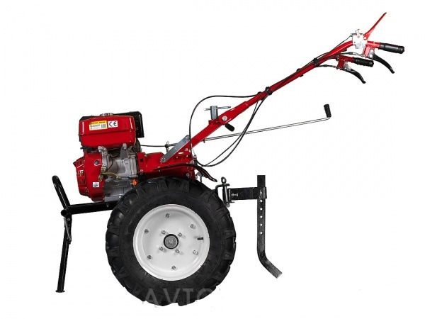 - Большие резиновые колёса — повышают проходимость и обеспечивают удобство в работе.