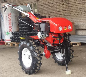 Максимальная комплектация для данной серии агрегатов. «Из коробки» Вы сразу получаете огромные колёса, самый мощный двигатель, культивирующие фрезы, универсальную сцепку, фару для работ в вечернее время и, как приятное дополнение, удобный бардачок на ручке. Так же в комплекте идет специальная защита на колеса, которая защищает фермера от земли и грязи.
